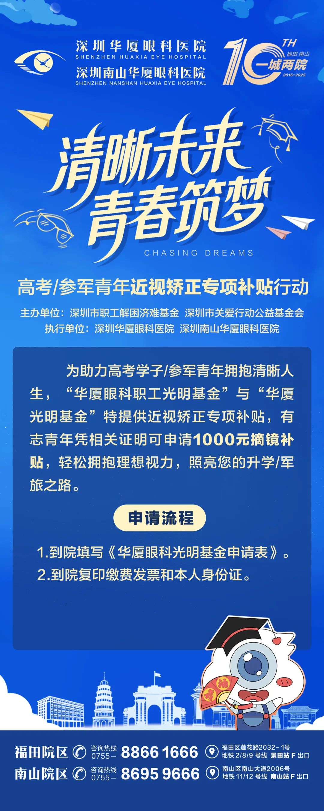 以 “个性化矫正” 为核心,开展全飞秒SMILE 4.0、半飞秒、全激光、ICL/PRL 晶体植入、龙晶®PR 型人工晶体等多元化术式,精准覆盖50度至3000度的近视矫正需求,可为近视考生量身定制最适合的手术方案。