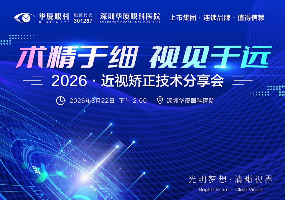 深圳华厦眼科医院术精于细,视见于远——2026近视矫正技术分享会将于3月22日14:00举办。现在报名,到场即享: