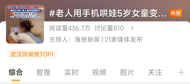 上热搜了!老人用手机哄娃,5岁女童变“斗鸡眼”!