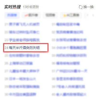今日,一则#每天半斤酒突然失明#的新闻登上热搜,引发了广泛关注与担忧。